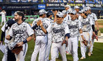 [OSEN=대구, 이석우 기자] 14일 대구삼성라이온즈파크에서 2025 신한 SOL 뱅크 KBO 리그 삼성 라이온즈와 KT 위즈의 경기가 열렸다. 홈팀 삼성은 후라도가, 방문팀 KT는 쿠에바스가 선발 출전했다. KT 위즈 선수들이 삼성 라이온즈에 10-