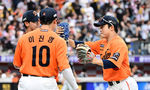 [OSEN=대전, 지형준 기자] 15일 대전 한화생명볼파크에서 2025 신한 SOL Bank KBO리그 한화 이글스와 LG 트윈스의 경기가 열렸다.이날 한화는 문동주, LG는 송승기를 선발로 내세웠다.5회초 2사 2루에서 LG 문성주가 이주헌의 좌전안타에