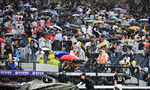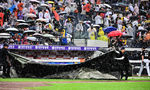 [OSEN=대전, 지형준 기자] 15일 대전 한화생명볼파크에서 2025 신한 SOL Bank KBO리그 한화 이글스와 LG 트윈스의 경기가 열렸다.이날 한화는 문동주, LG는 송승기를 선발로 내세웠다.5회말 1사 2루에서 한화 채은성 타석에 폭우로 경기