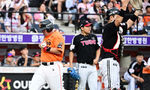 [OSEN=대전, 지형준 기자] 15일 대전 한화생명볼파크에서 2025 신한 SOL Bank KBO리그 한화 이글스와 LG 트윈스의 경기가 열렸다.이날 한화는 문동주, LG는 송승기를 선발로 내세웠다.4회초 2사 만루에서 한화 문동주가 LG 김현수에 2타점