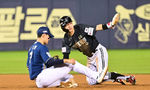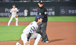 [OSEN=잠실, 박준형 기자] 17일 오후 서울 잠실구장에서 ‘2025 신한 SOL BANK KBO리그’ LG 트윈스와 NC 다이노스의 경기가 진행됐다.이날 LG는 에르난데스를, NC는 라일리를 선발투수로 내세웠다.7회말 1사 1루 신민재의 헛스윙 삼진때 1
