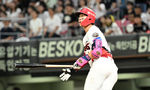 [OSEN=고척, 최규한 기자] 18일 서울 고척스카이돔에서 ‘2025 신한 SOL Bank KBO리그’ 키움 히어로즈와 SSG 랜더스의 경기가 열렸다.홈팀 키움은 하영민, 방문팀 SSG는 김건우를 선발로 내세웠다.5회초 2사 1루 상황 SSG 최지훈이 안타를