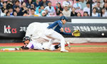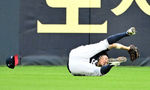 [OSEN=잠실, 지형준 기자] 21일 오후 서울 잠실구장에서 ‘2025 신한 SOL Bank KBO리그’ LG 트윈스와 두산 베어스의 경기가 열렸다.LG는 에르난데스, 두산은 곽빈이 선발로 나섰다.5회말 1사 1루에서 두산 정수빈이 LG 오스틴의 중견수 플