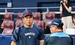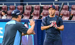 [OSEN=고척, 민경훈 기자] 24일 오후 서울 고척스카이돔에서 ‘2025 신한 SOL Bank KBO리그’ 키움 히어로즈와 롯데 자이언츠의 경기가 열렸다.이날 키움은 정현우, 롯데는 감보아를 선발로 내세웠다.경기 전 롯데 전준우가 김태형 감