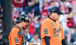 [OSEN=대전, 최규한 기자] 26일 대전 한화생명볼파크에서 ‘2025 신한 SOL Bank KBO리그’ 한화 이글스와 SSG 랜더스의 경기가 열렸다.홈팀 한화는 류현진, 방문팀 SSG는 김광현을 선발로 내세웠다.1회초 무사 만루 상황 SSG 김성욱에게 3