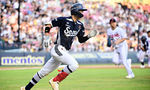 [OSEN=잠실, 조은정 기자]7일 오후 서울 잠실구장에서 ‘2025 신한 SOL Bank KBO리그’ LG 트윈스와 두산 베어스의 경기가 열렸다.LG는 송승기, 두산은 곽빈을 선발로 내세웠다.2회초 2사 1,2루 두산 김민석이 우익선상으로 선제 1타점 적