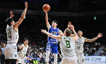 [OSEN=부산, 이석우 기자] 31일 부산 사직체육관에서 2025-2026 LG전자 프로농구 부산 KCC와 원주 DB의 경기가 열렸다.2025년 마지막 경기가 8번째 농구영신으로 열렸다.부산 KCC 허훈이 원주 DB 이선 알바노, 강상재의 마크를 피해 골밑슛
