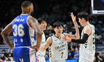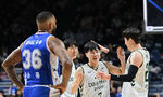 [OSEN=부산, 이석우 기자] 31일 부산 사직체육관에서 2025-2026 LG전자 프로농구 부산 KCC와 원주 DB의 경기가 열렸다.2025년 마지막 경기가 8번째 농구영신으로 열렸다.원주 DB 이용우가 3점슛을 성공시키고 동료들의 축하를 받고 있다. 2
