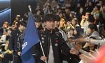 [OSEN=종로, 고용준 기자] 9일 오후 서울 종로 롤파크 LCK아레나에서 '2026 LoL 시즌 오프닝: 데마시아를 위하여' 가 열렸다. 오프닝 입장이 끝난 후 깃발을 든 ‘팀 원딜’의 주장 ‘룰러’ 박재혁이 팬과 시선을 교환하