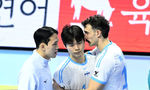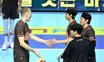 [OSEN=인천, 이대선 기자] OK저축은행이 13일 인천 계양체육관에서 열린 프로배구 진에어 2025~26 V리그 남자부 4라운드 홈경기에서 대한항공에 세트스코어 3-2(21-25 25-20 20-25 30-28 15-13)로 승리했다.경기 종료 후 대한항공 선수들이 득