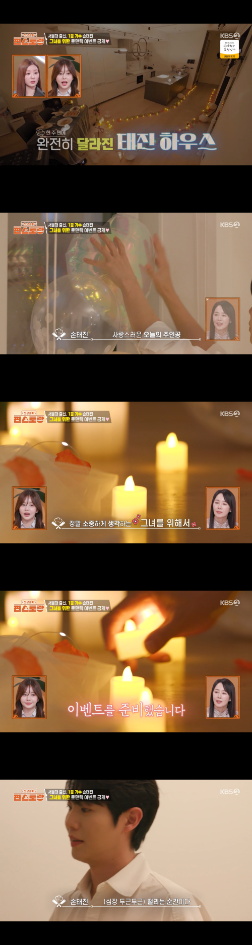 이날 방송에서 손태진은 불과 지난주까지만 해도 정리가 되지 않아 어수선했던 집이 말끔하게 달라진 모습을 공개해 눈길을 끌었다. 깔끔하게 정돈된 공간은 물론, 바닥에는 촛불로 길까지 만들어져 있어 단번에 분위기를 바꿨다.