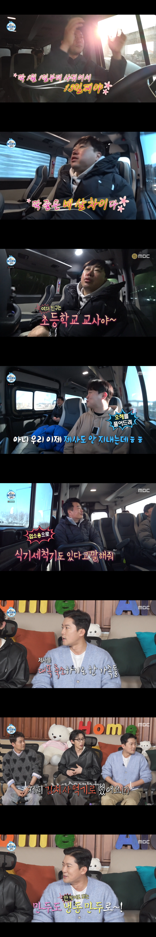 이날 김대호의 사촌 형은 최근 여자친구가 생겼다고 밝히며, 두 사람이 함께 ‘나 혼자 산다’ 제사 편을 봤다고 전했다. 이에 사촌들은 “우리 이제 제사도 안 지내는데 오해 풀어줘”, “식기세척기 다 있다고 해, 업소용으로”라며 웃음을 섞어 분위기를 풀었다.