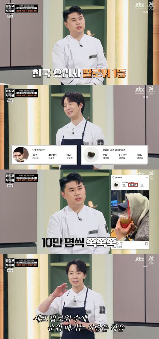 손종원이 무반응하자 권성준은 “좀 좋아해 주세요”라며 “높은 인별 팔로워 수 유지하기 위해 온몸 비틀기를 한다. 근데 우리 손종원 셰프님은 셀카 한번 올리면 팔로워 수가 10만명이 올라간다”라고 씁쓸해했다. 이에 손종원은 “대한민국 어느 셰프도 셰프 팔로워 수 보는 걸 본 적이 없다”라고 신기하게 여겼다.