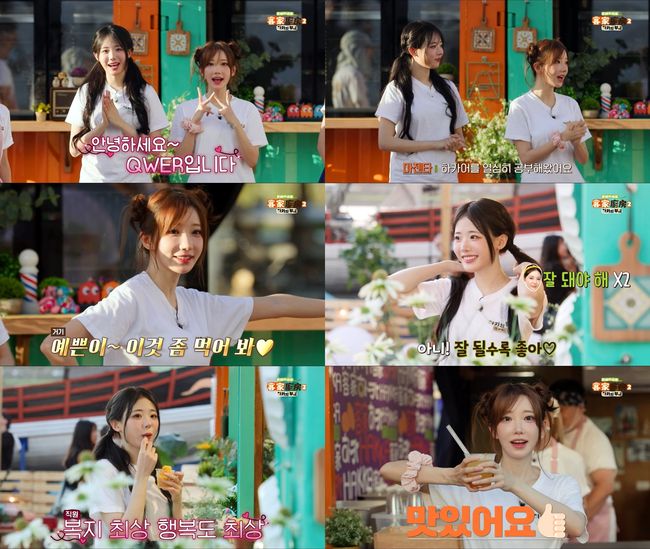 밴드 QWER(큐더블유이알) 멤버 마젠타와 히나가 긍정 에너지 넘치는 특급 아르바이트생으로 분했다.