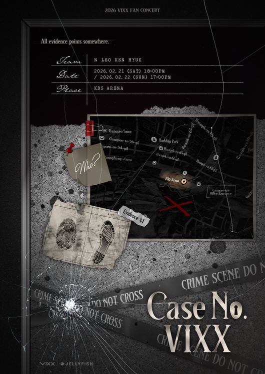 앞서 공개된 팬 콘서트 포스터는 범죄 현장을 추적하는 디자인을 콘셉트로 팀명과 멤버들의 이름, 공연 일정과 장소를 사건 기록처럼 배치해 눈길을 끌었다. 증거 요소들이 더해진 탐정 콘셉트 무드는 ‘Case No. VIXX’라는 타이틀과 맞물리며 이번 팬 콘서트에서 펼쳐질 스토리와 무대에 대한 기대감을 한층 끌어올렸다.