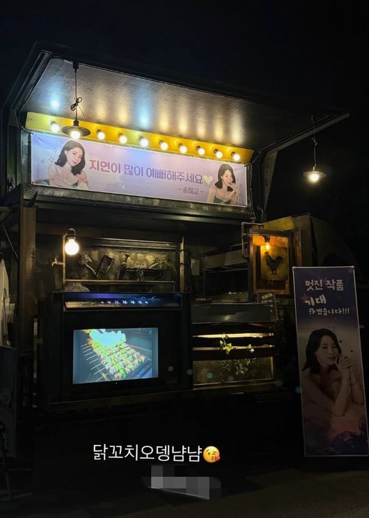 임지연은 해당 게시물에 “고언니”라는 멘트와 함께 송혜교의 계정을 태그하며 고마운 마음을 전했다. 또 다른 사진에는 “닭꼬치 오뎅 냠냠”이라는 문구를 덧붙이며 간식차를 제대로 즐기는 근황도 공개했다.