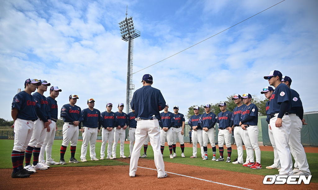 롯데 선수들이 훈련에 앞서 모임을 갖고 있다. 2026.01.31 / foto0307@osen.co.kr