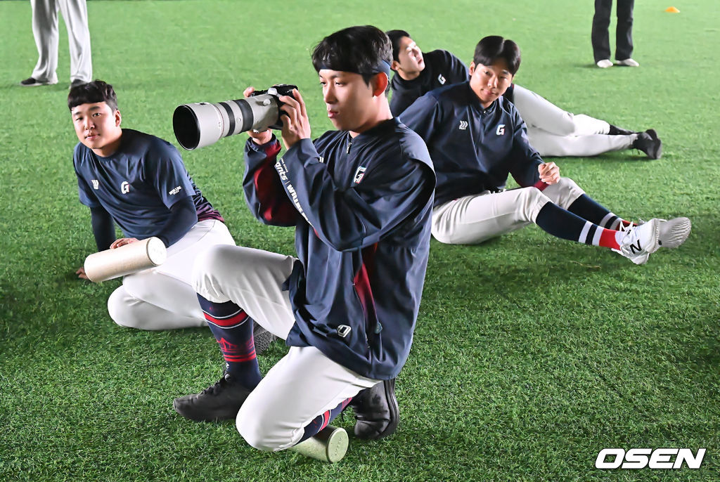 롯데 황성빈이 카메라로 선수들의 사진을 찍고 있다. 2026.01.31 / foto0307@osen.co.kr