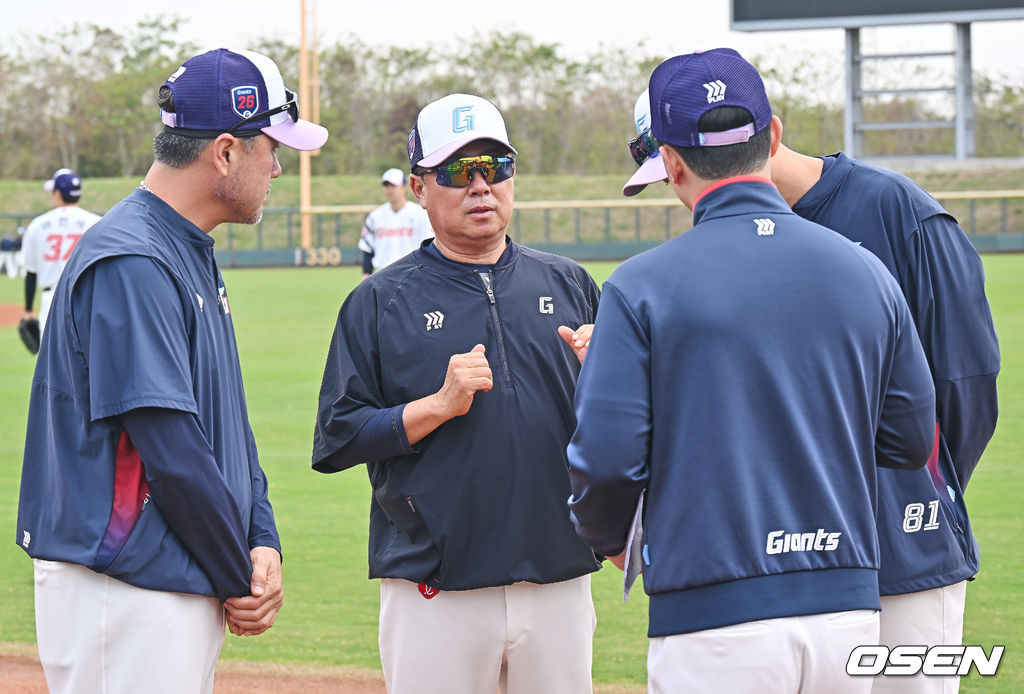 롯데 김태형 감독이 코치들과 얘기하고 있다. 2026.02.01 / foto0307@osen.co.kr