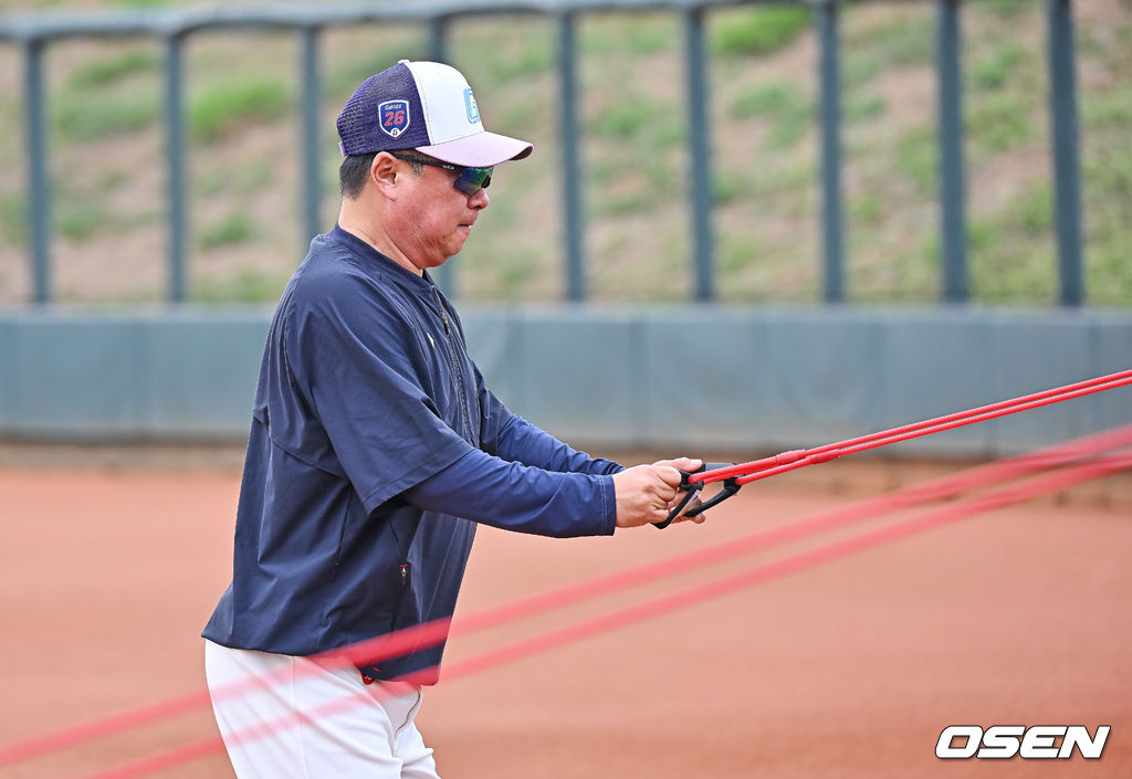 몸 푸는 김태형 감독