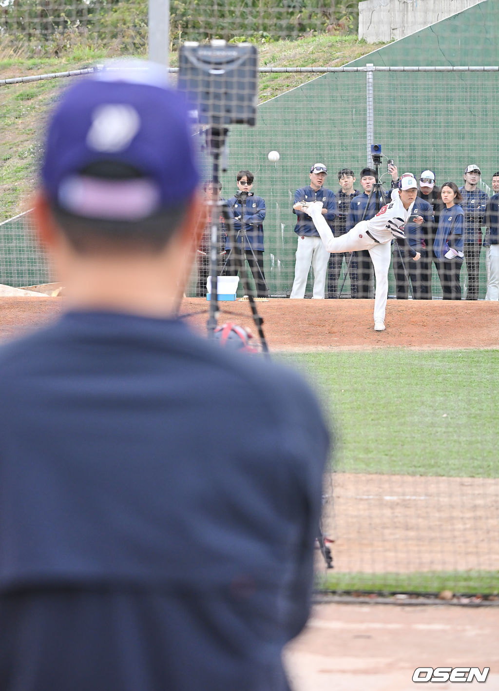 롯데 쿄야마가 김태형 감독이 지쿄보는 가운데 불펜투구를 하고 있다. 2026.02.01 / foto0307@osen.co.kr
