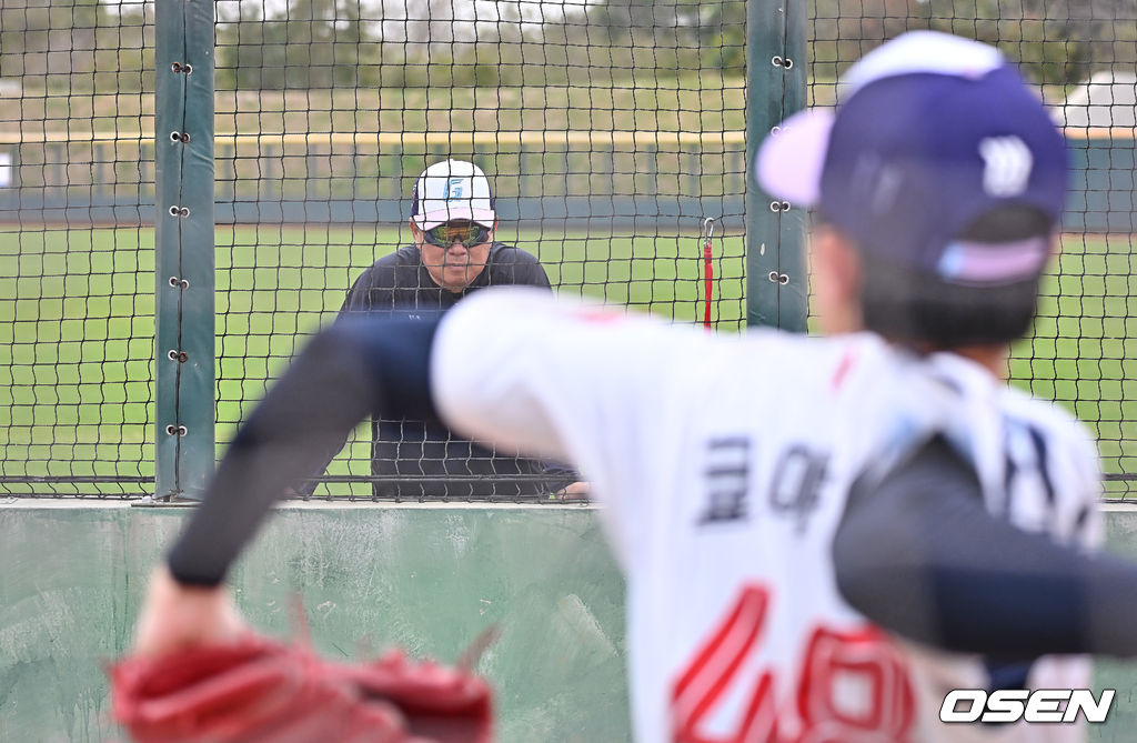 롯데 김태형 감독이 쿄야마 투수의 불펜투구를 지켜보고 있다. 2026.02.01 / foto0307@osen.co.kr