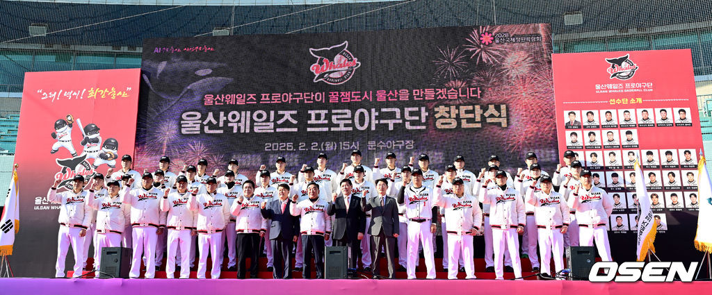 이날 창단식에는 김두겸 울산시장을 비롯해 허구연 KBO 총재, 김철욱 시 체육회장, 야구 관계자·선수단, 시민 등 500여 명이 참석했다. 울산웨일즈 프로야구단은 오는 3월 20일 KBO 퓨처스리그 개막전을 시작으로 시즌 일정에 돌입한다.