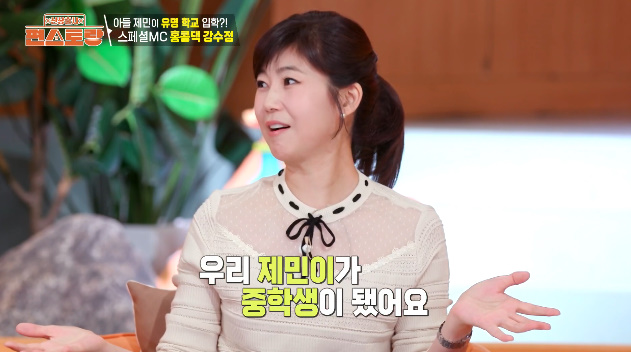 이날 오마이걸 효정은 강수정에게 "SNS 요즘 되게 열심히 하시는거 보고 있었다"라고 말했고, 강수정은 "우리 제민이가 중학생이 됐다"고 전했다.