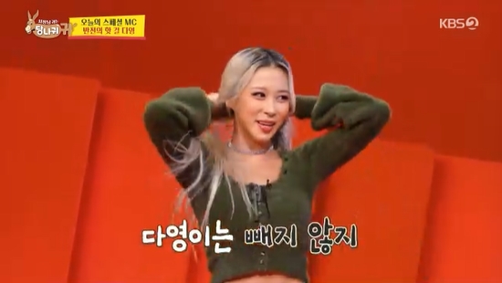 박명수는 "말 나온 김이 ‘body’ 한 소절만 해주면 안 되냐?"고 요청했고, 다영은 곧바로 무대 중앙으로 나와 안무를 선보여 시선을 사로잡았다.