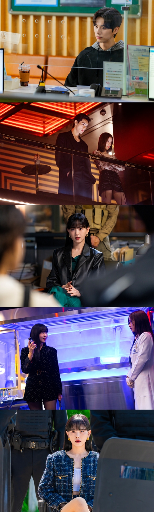 한편, 회장의 장녀이자 ‘조나단’의 누나인 ‘조안나’의 스틸은 흐트러짐 없는 옷차림과 당당한 태도로, 두려울 것 없는 당당한 ‘범인회’ 후계자의 면모를 그대로 드러낸다. 남부러울 것 없이 자라 사람들을 막대하는 안하무인의 성격을 지닌 ‘조안나’. 살짝 당황한 듯한 그의 표정은 히어로들을 쫓는 과정에서 그가 어떤 변수에 맞닥뜨릴지 궁금증을 더한다. 히어로들의 초능력을 호시탐탐 노리는 ‘범인회’의 ‘빌런 남매’는 같은 목표를 향해 움직이는 동시에, 후계자 자리를 두고 경쟁해 극의 긴장감을 더한다.
