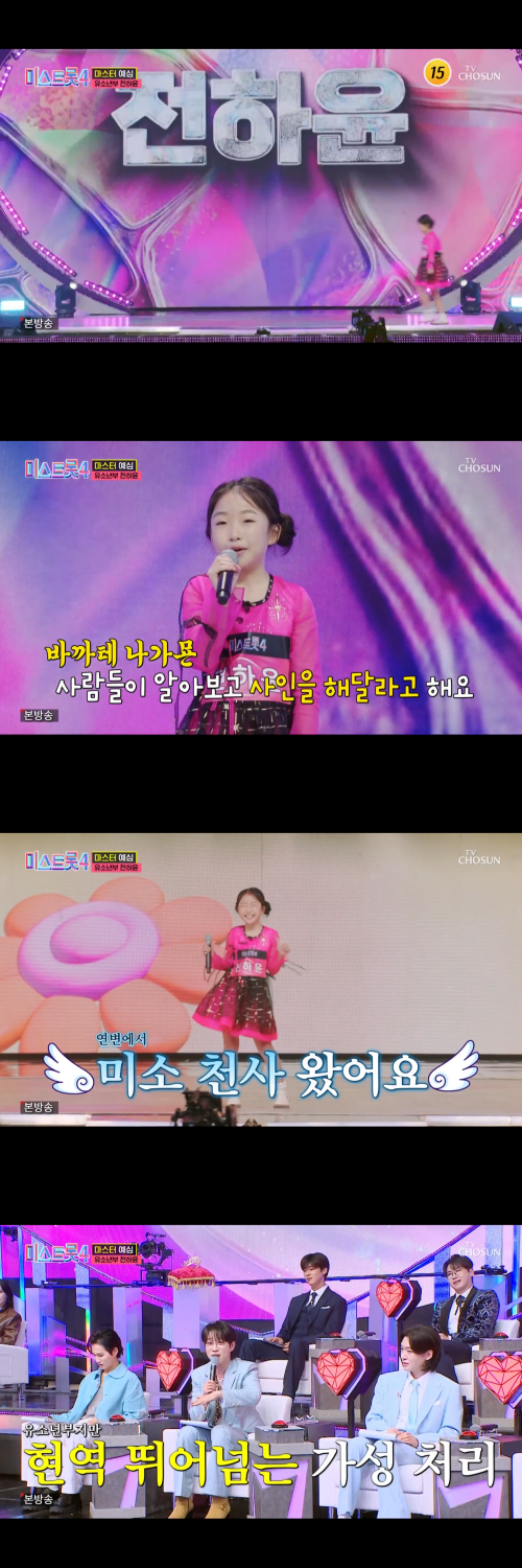 ‘미스트롯4’ 최연소 참가자 전하윤이 깜짝 등장과 함께 올하트를 받아내며 강렬한 인상을 남겼다.