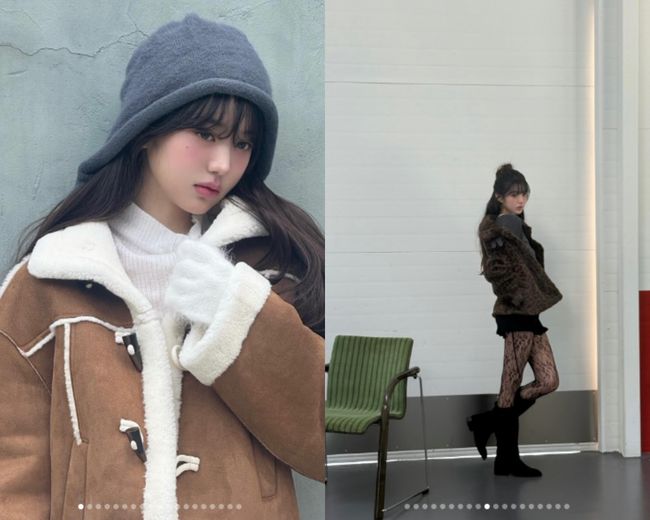 또 다른 사진에서는 레오파드 패턴의 아우터와 미니멀한 블랙 룩, 롱부츠를 매치해 늘씬한 각선미를 드러냈다. 특히 장원영은 시스루 스타킹으로 성숙미를 물씬 풍겼으며, 인형 같은 미모를 과시해 감탄을 자아냈다.