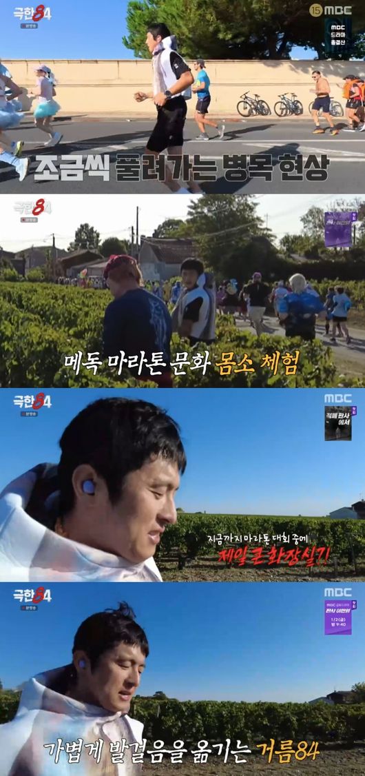 28일 방송된 MBC 예능 ‘극한84’에서는 프랑스 메독 마라톤에 출전한 기안84가 야외에서 볼일을 보는 모습이 그려졌다.