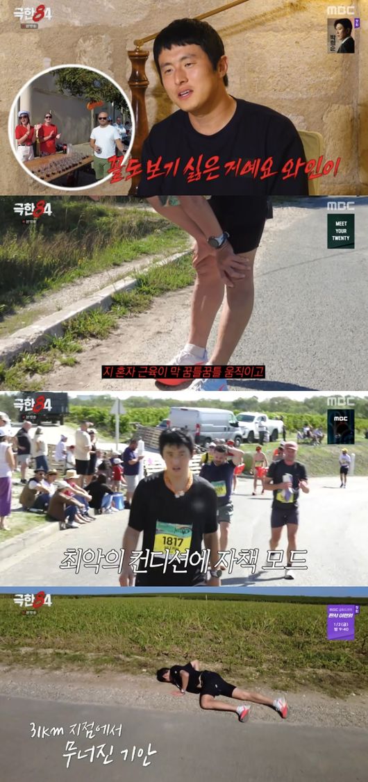 28일 방송된 MBC 예능 ‘극한84’에서는 프랑스 메독 마라톤에 출전한 기안84가 점점 악화되는 몸 상태에 결국 멈춰 선 모습이 그려졌다.