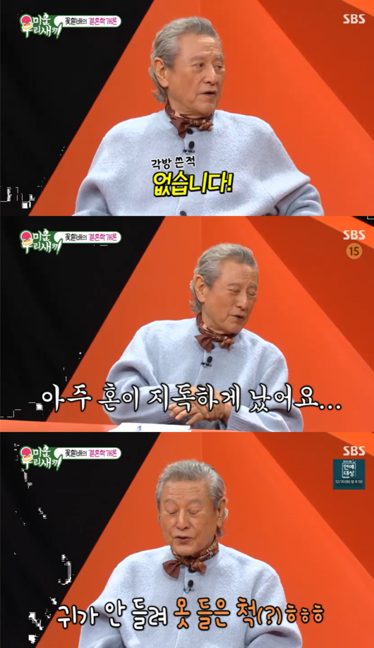 박근형은 젊었을 때는 아내의 말을 하나하나 다 듣고 대꾸해야 했지만, 이제는 나이가 들어 귀가 어두워진 점을 십분 활용한다고 너스레를 떨어 좌중을 초토화했다.