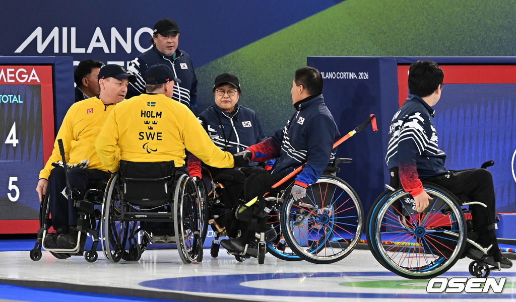 13일(현지시간) 이탈리아 코르티나담페초 컬링 올림픽 스타디움에서 ‘2026 밀라노 코르티나 패럴림픽 휠체어컬링 혼성 4인조’ 한국과 스웨덴의 동메달 결정전이 열렸다.