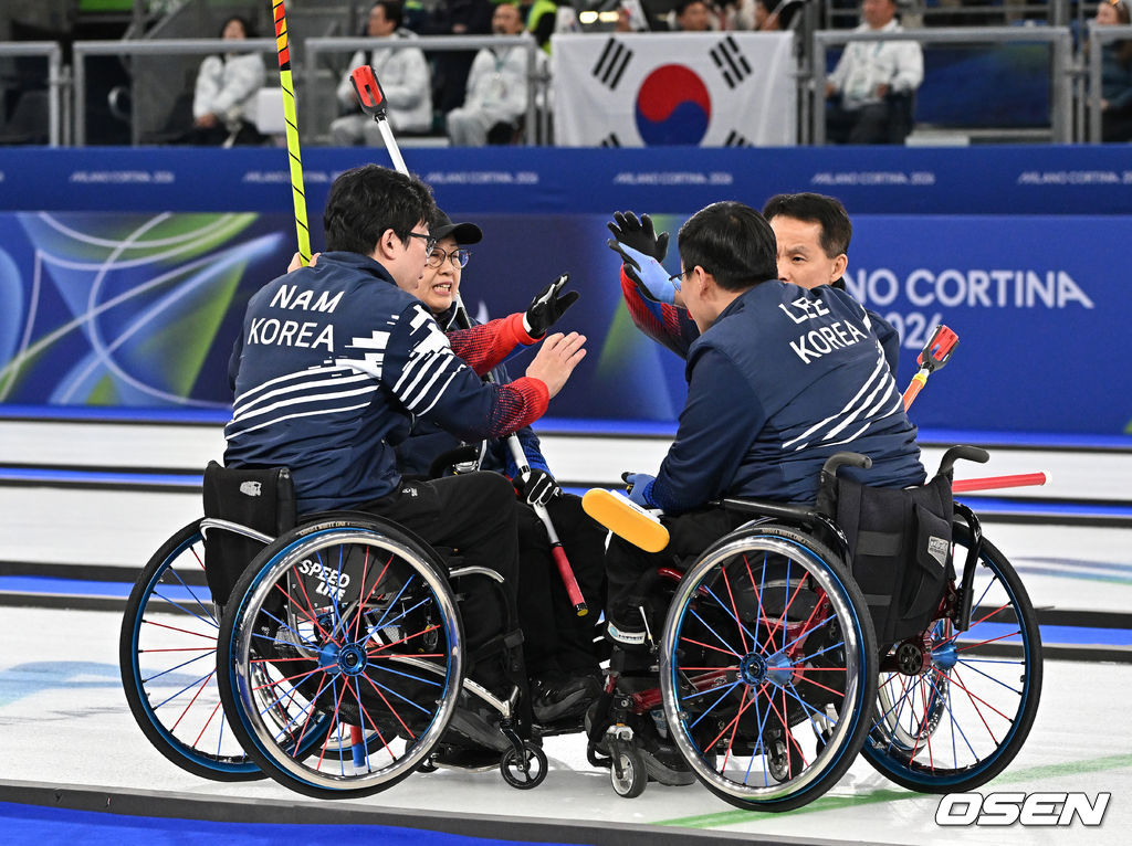 13일(현지시간) 이탈리아 코르티나담페초 컬링 올림픽 스타디움에서 ‘2026 밀라노 코르티나 패럴림픽 휠체어컬링 혼성 4인조’ 한국과 스웨덴의 동메달 결정전이 열렸다.