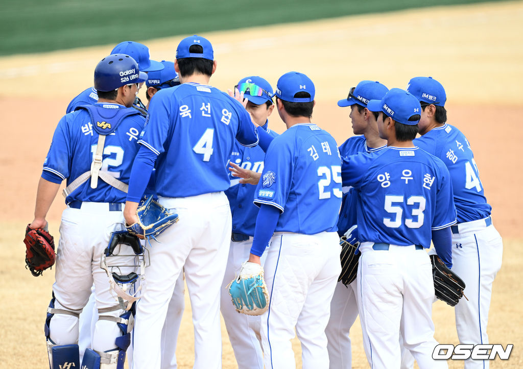 경기 종료 후 삼성 선수들이 승리의 기쁨을 나누고 있다. 2026.03.14 /sunday@osen.co.kr