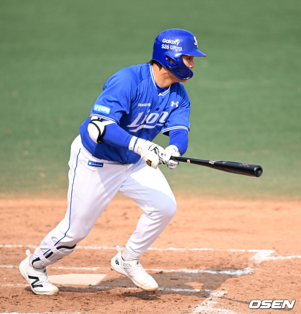 8회초 무사에서 삼성 박세혁이 땅볼을 치고 있다. 2026.03.14 /sunday@osen.co.kr