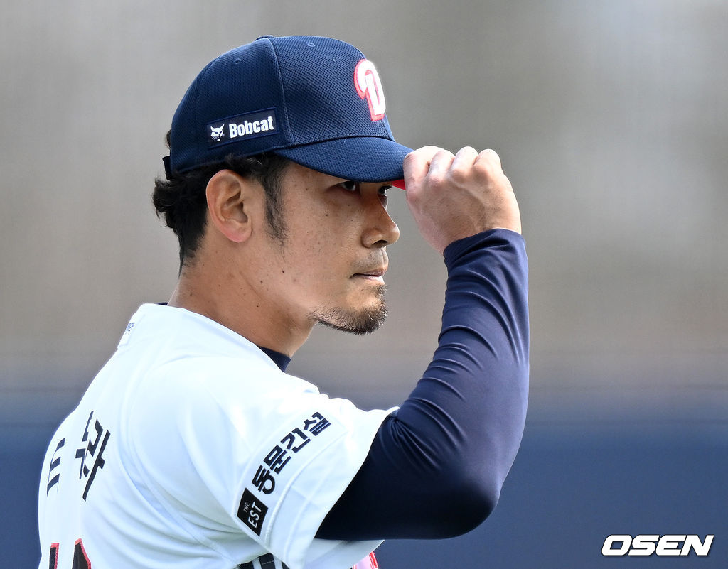 6회초 수비를 마친 두산 타무라가 더그아웃을 가며 관중석을 향해 인사를 하고 있다. 2026.03.14 /sunday@osen.co.kr