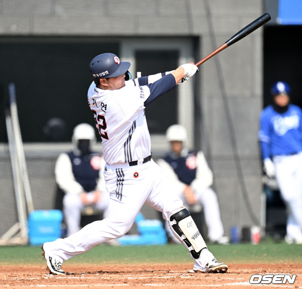 2회말 무사 1루에서 두산 김기연이 안타를 치고 있다. 2026.03.14 /sunday@osen.co.kr