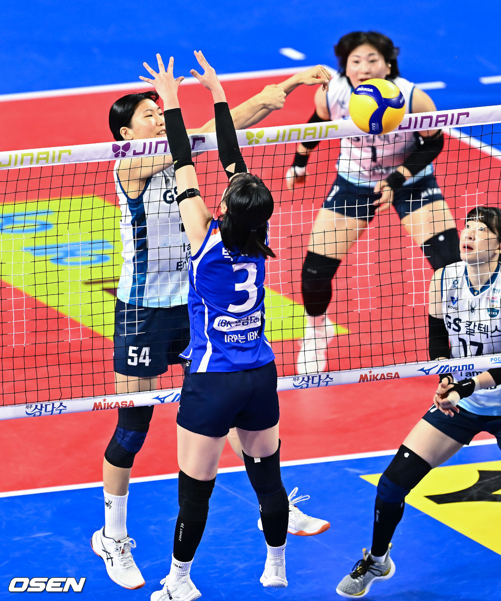 14일 오후 경기도 화성종합실내체육관에서 진에어 2025-2026 여자배구 V리그 IBK기업은행과 GS칼텍스의 경기가 진행됐다.