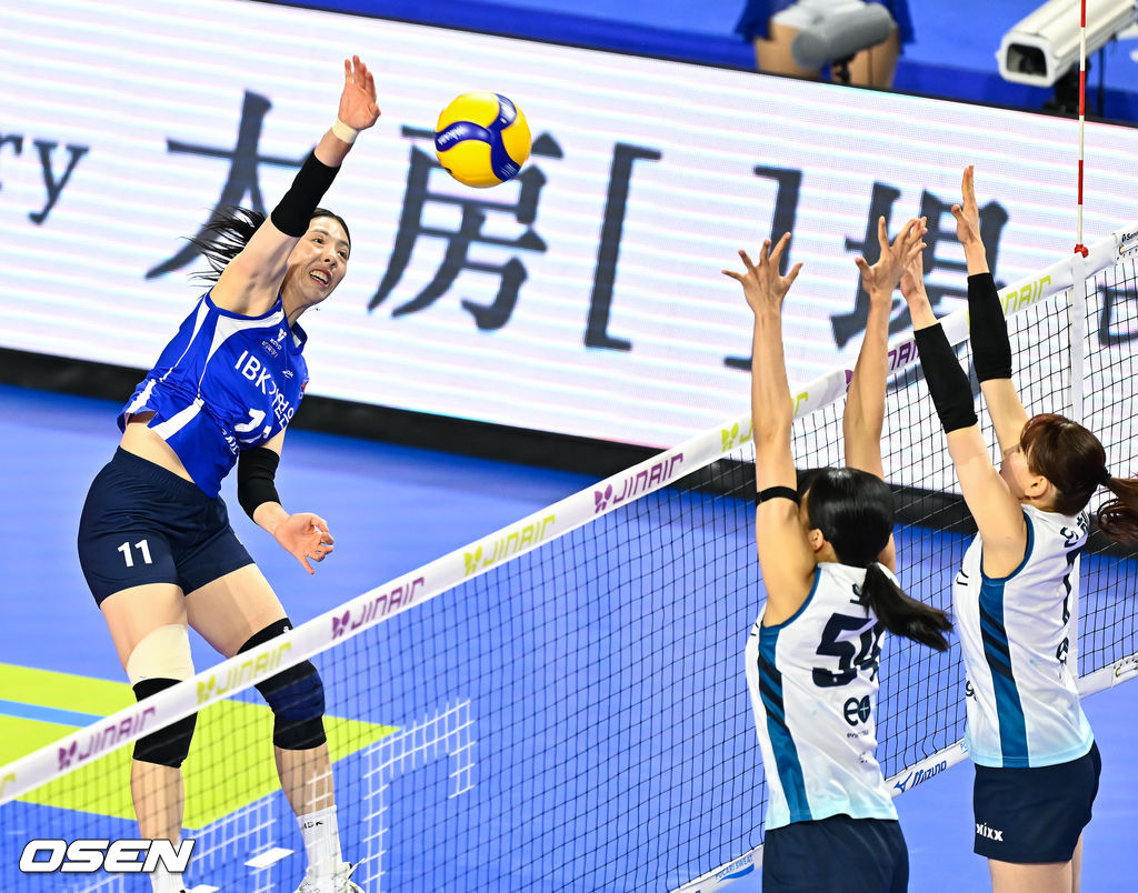14일 오후 경기도 화성종합실내체육관에서 진에어 2025-2026 여자배구 V리그 IBK기업은행과 GS칼텍스의 경기가 진행됐다.