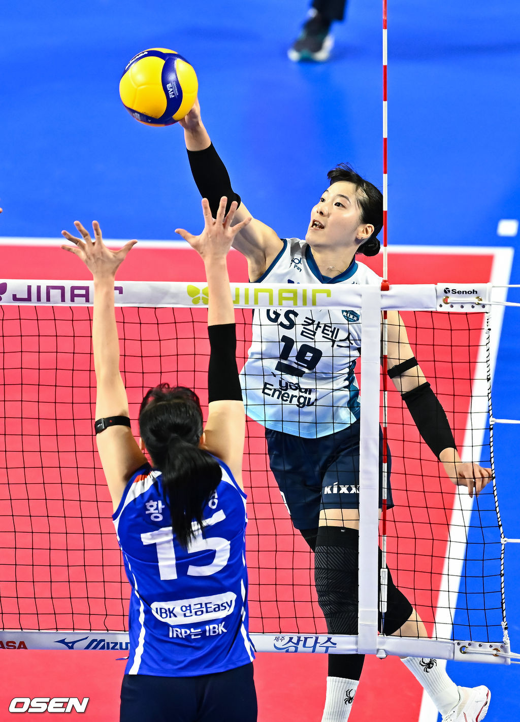 14일 오후 경기도 화성종합실내체육관에서 진에어 2025-2026 여자배구 V리그 IBK기업은행과 GS칼텍스의 경기가 진행됐다.