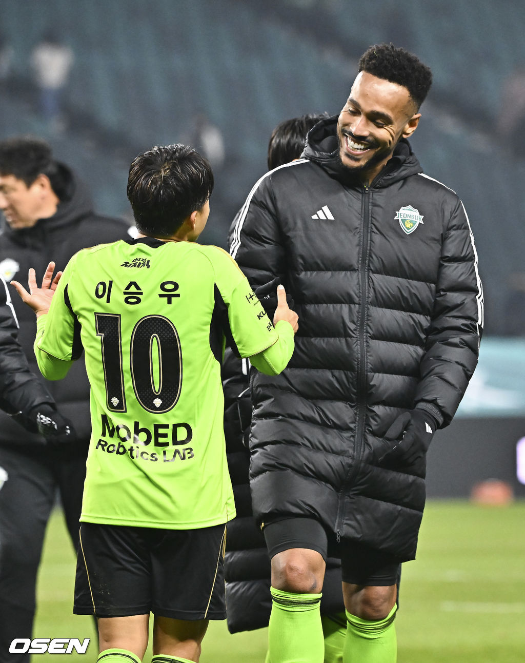 경기종료 후 전북 현대 이승우와 모따가 승리의 기쁨을 나누고 있다. 2026.03.18 / soul1014@osen.co.kr