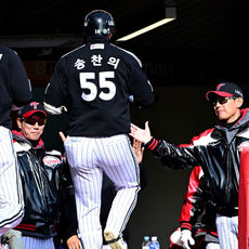 2026.03.19 15: 54송찬의 시범경기 투런포 반기는 LG 염경엽 감독