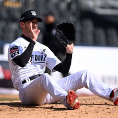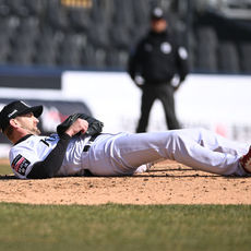 2026.03.19 14: 21마운드에 누운 보쉴리 '위험한 타구 피했어'