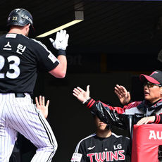 2026.03.19 14: 28'재역전 투런포' 오스틴 맞이하는 LG 염경엽 감독