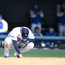 김성윤 번트 타구 놓치는 이영하