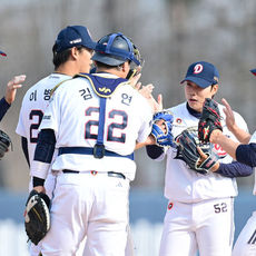 2026.03.15 16: 11시범경기 승리 하이파이브 나누는 두산